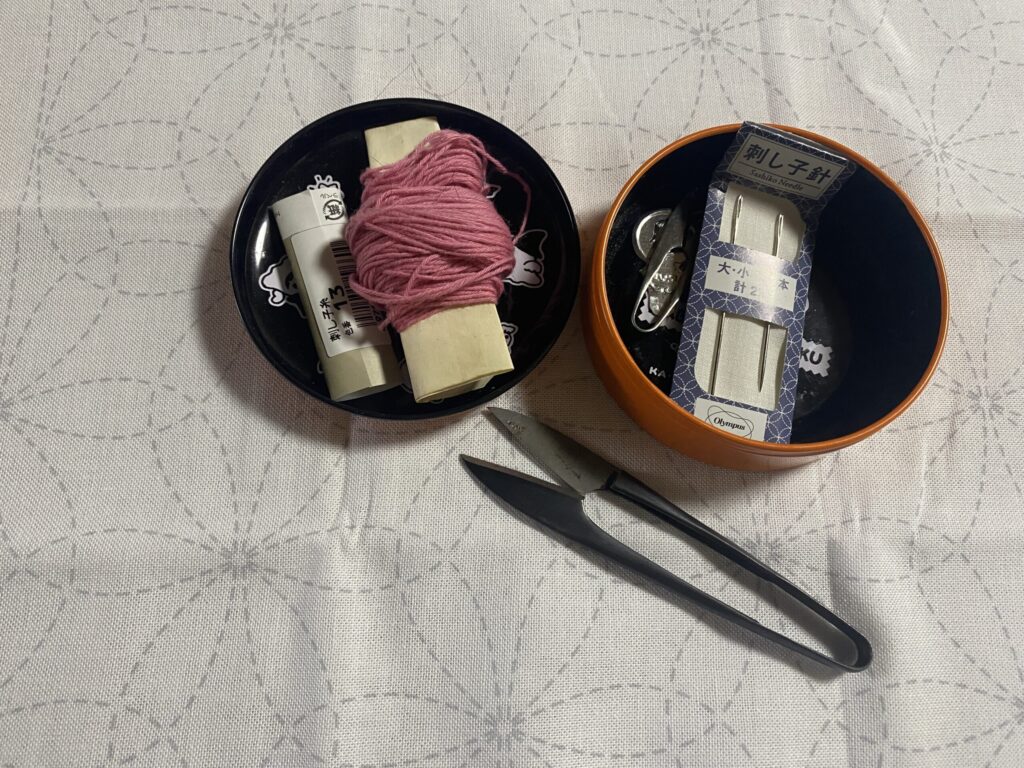 夜は目が疲れるので、刺し子は明るい時間だけにすること。