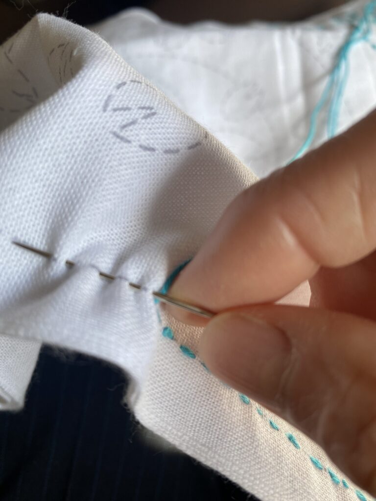 よく見ると目はまだ不揃いですが、今はきれいに縫うことよりも、毎日少しずつ続けることが大切だと思っています。