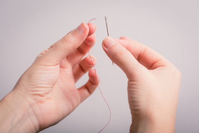 針に糸を通して、一針だけでも縫ってみようと思います。