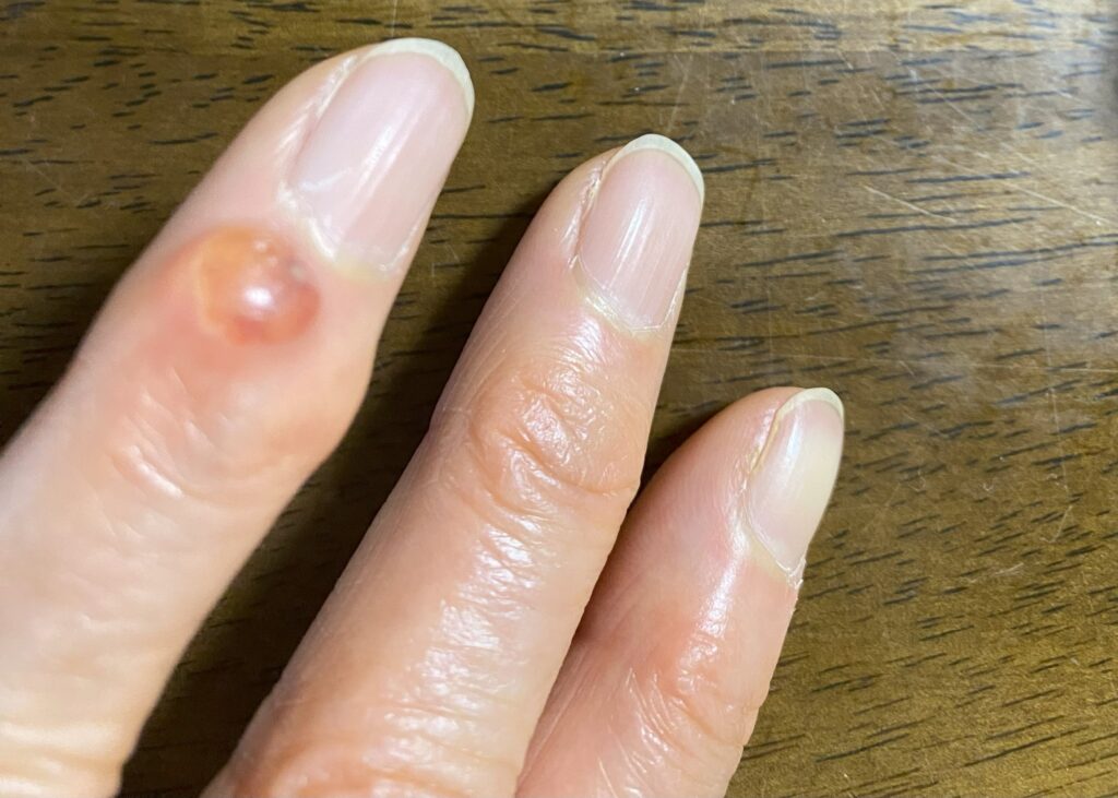 左手の薬指の第一関節の両脇に、小さなこぶのようなものができ、触ると痛みます。