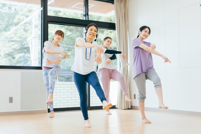 ズンバでは、音楽に合わせて右へ左へと動き、途中にはスクワットのような動きも入ります。