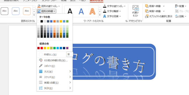 ここから、図形の色、枠線の色や太さなどをまとめて編集できます。