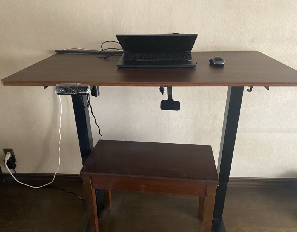 私が昇降デスクを選んだ一番の理由は、高さを自由に調整できることです。立って作業をしたいときは高めに、疲れて座りたいときは低めに――ボタンひとつでスムーズに切り替えられるので、とても便利です。