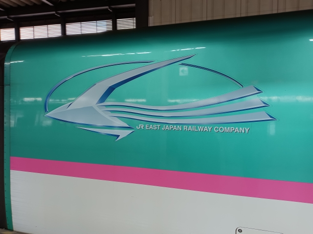 ホームに滑り込んできたのは、北海道新幹線「はやぶさ」。