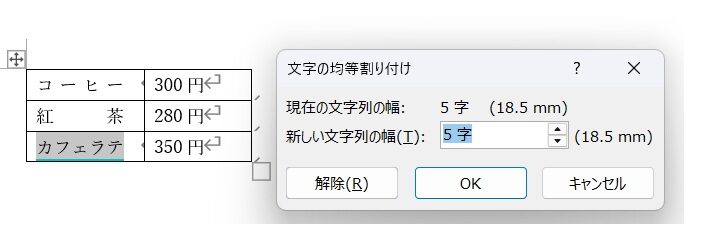 - 表で作成時の注意:セル内で中央揃え・均等割り付けを使うときれいに整う