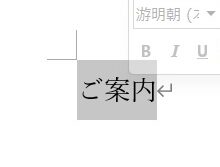 - 上記の「ご案内」を範囲選択(段落記号を含めずに文字のみ)