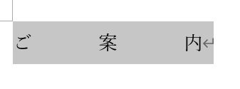 ※「重[半角スペース]要なお知らせ」になっています。文字と文字の間に1バイト(半角)分の隙間があるので、均等割り付けしても左右のバランスが不自然になります。